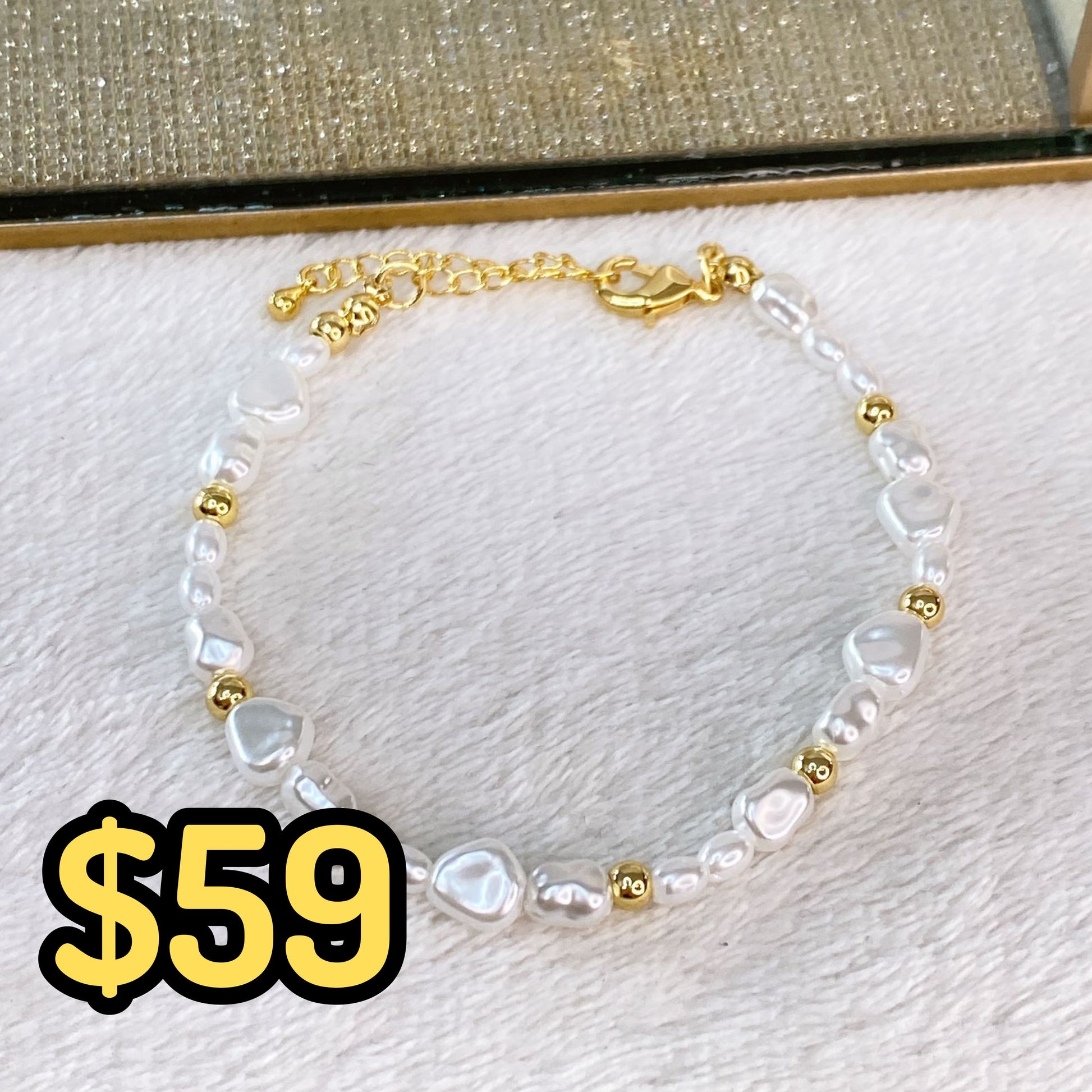Pulsera de Perlas y Cuencas de Chapa de Oro COP1613-1