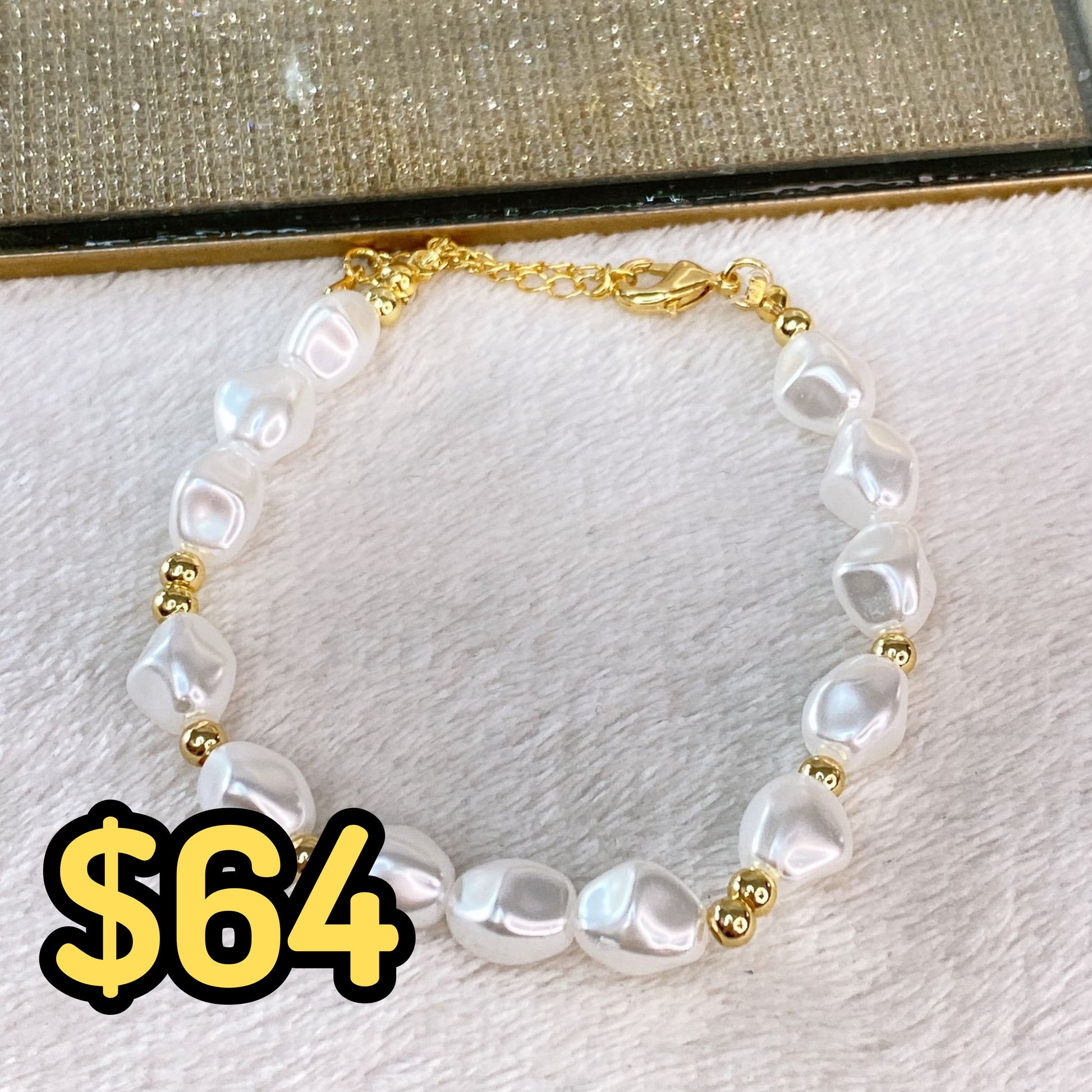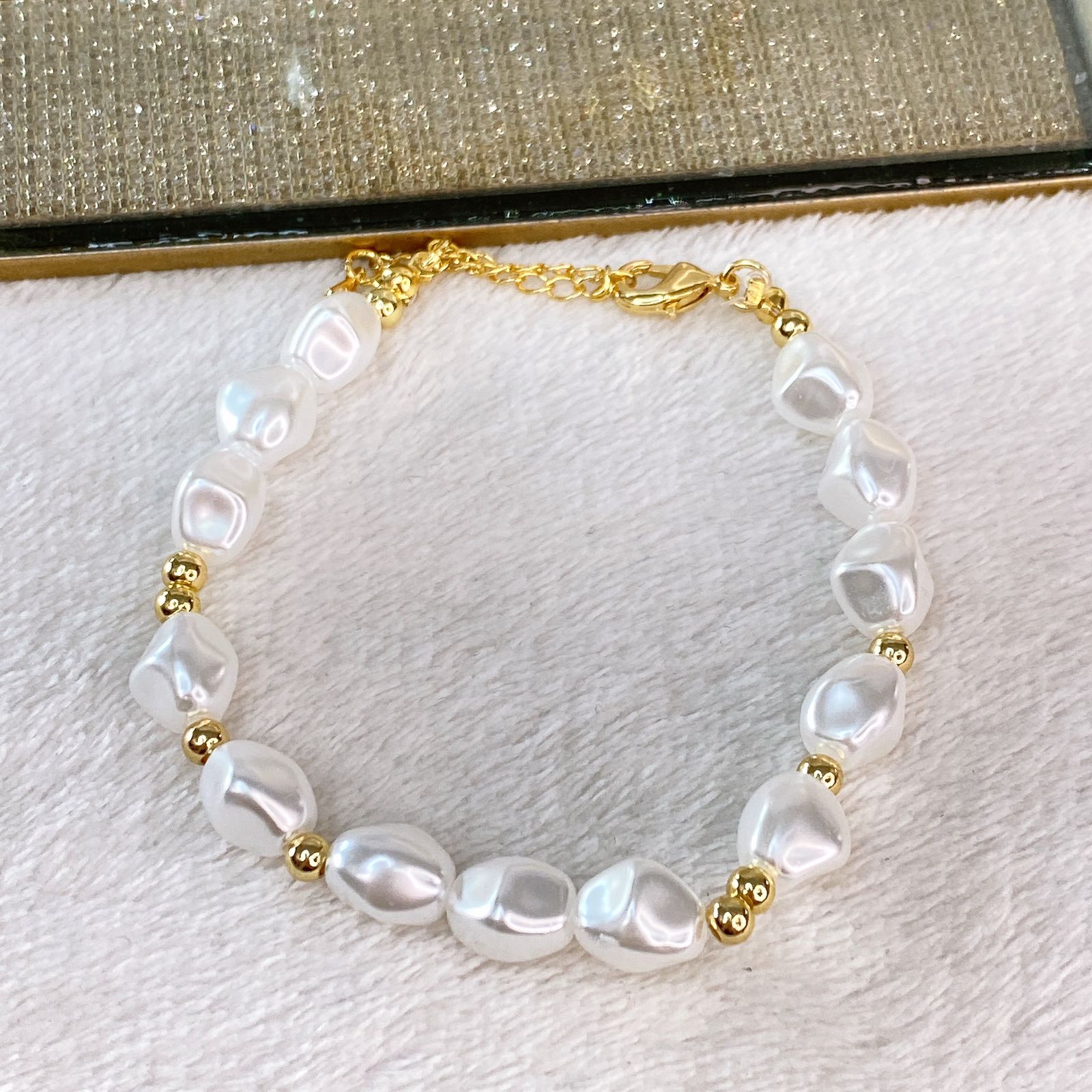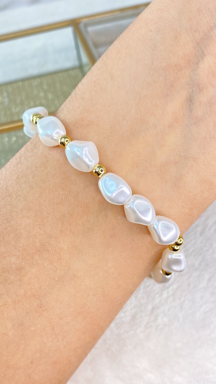 Pulsera de Perlas y Cuencas de Chapa de Oro COP1614-1