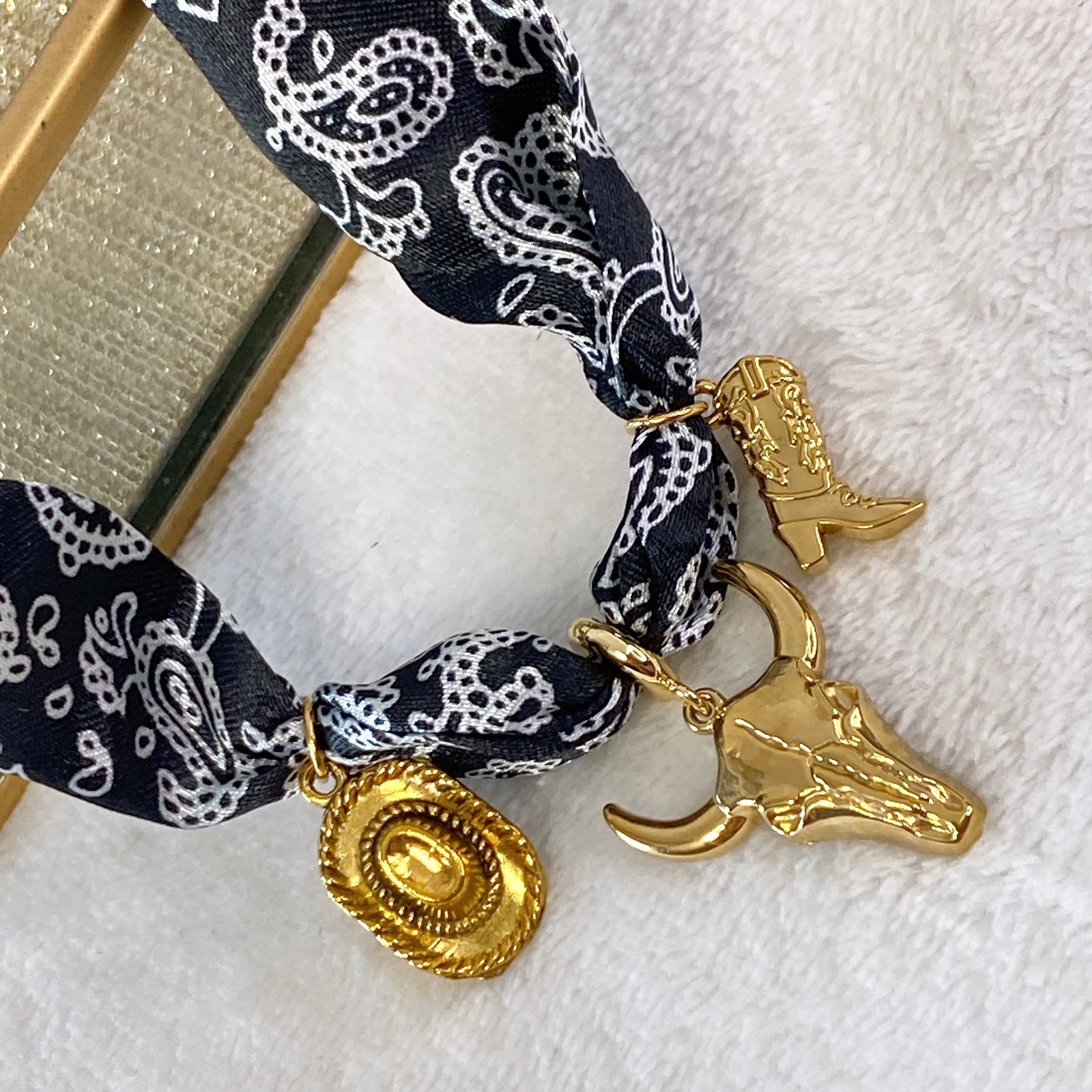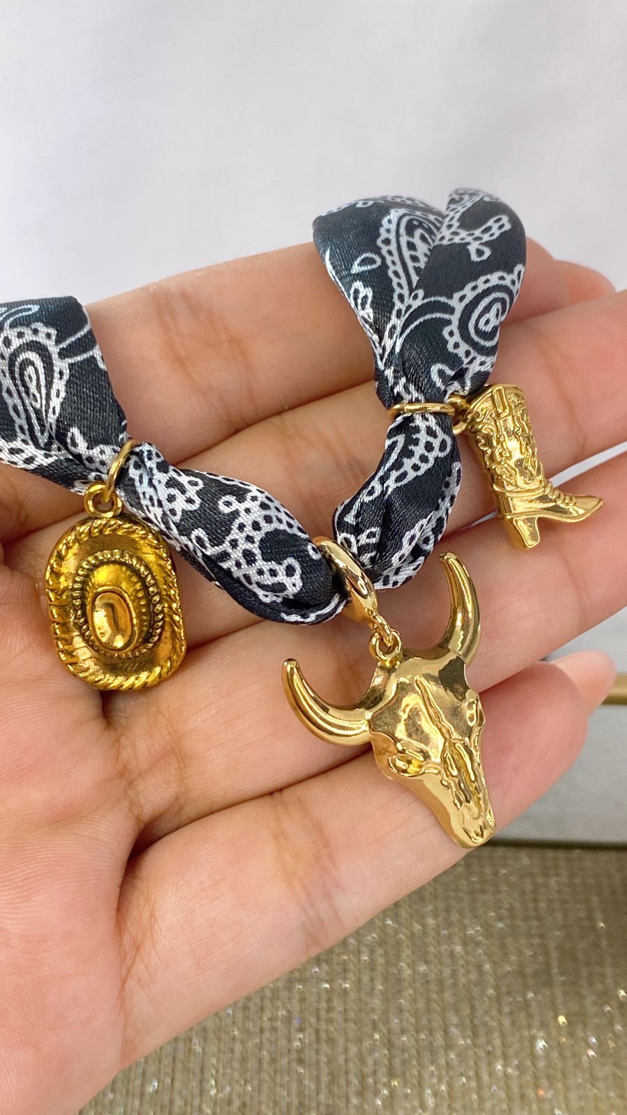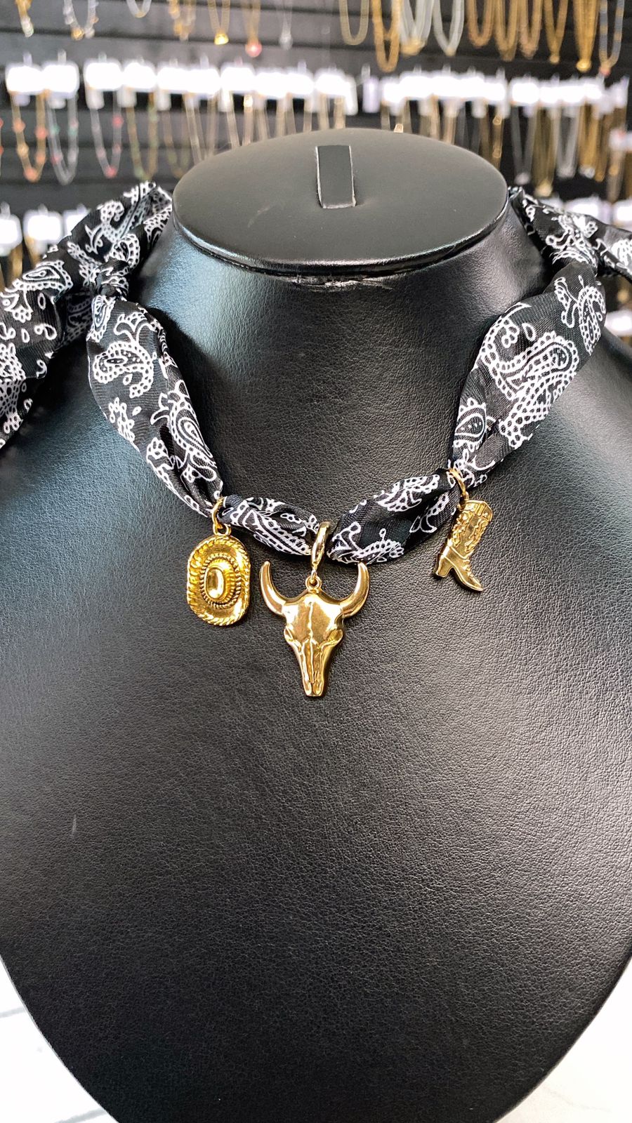 MATERIAL: COLLAR DE TELA CON DIJES DE ACERO INOXIDABLE